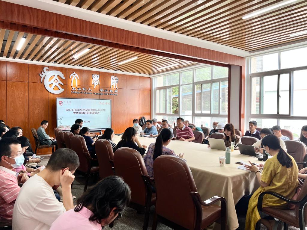 会上,文学院党委书记普理禄传达了习近平总书记在中国人民大学考察时的重要讲话精神和在纪念五四远动一百周年大会上的讲话精神,并结合文学院实际对进一步落实和贯彻习近平总书记近期重要讲话精神提出了相关要求。