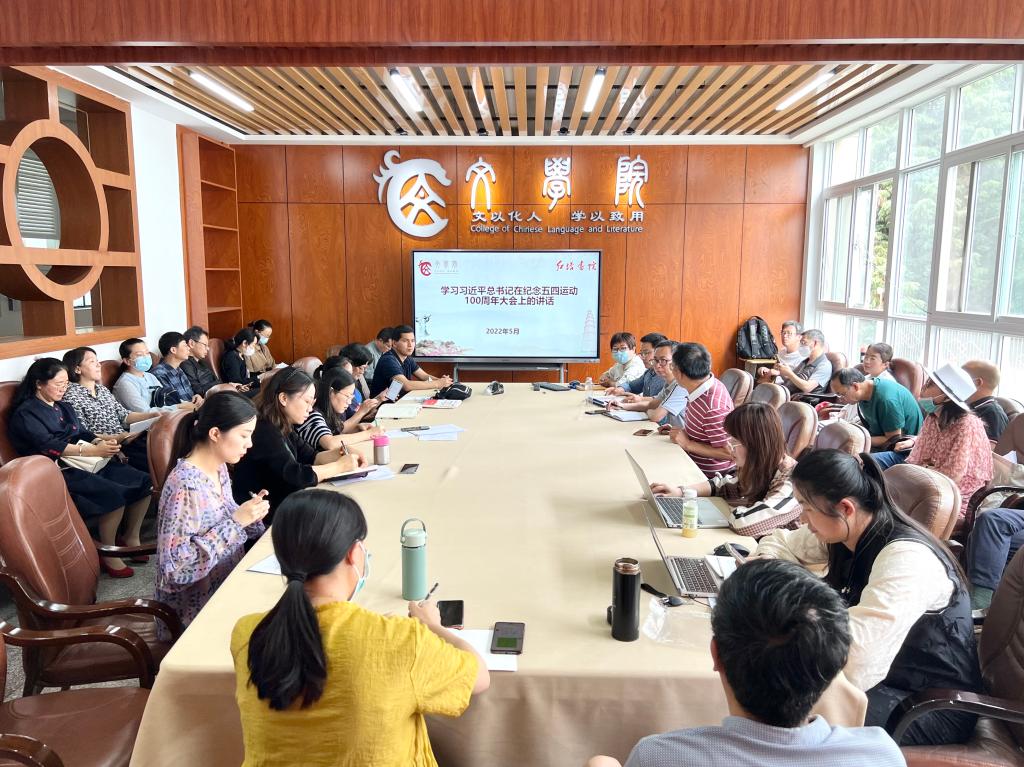 5月11日,文学院在八教303会议室召开了全院教师会,并组织集中学习了习近平总书记在中国人民大学考察时重要讲话精神和在纪念五四运动一百周年大会上的讲话精神。全体文学院教师参与了本次会议。