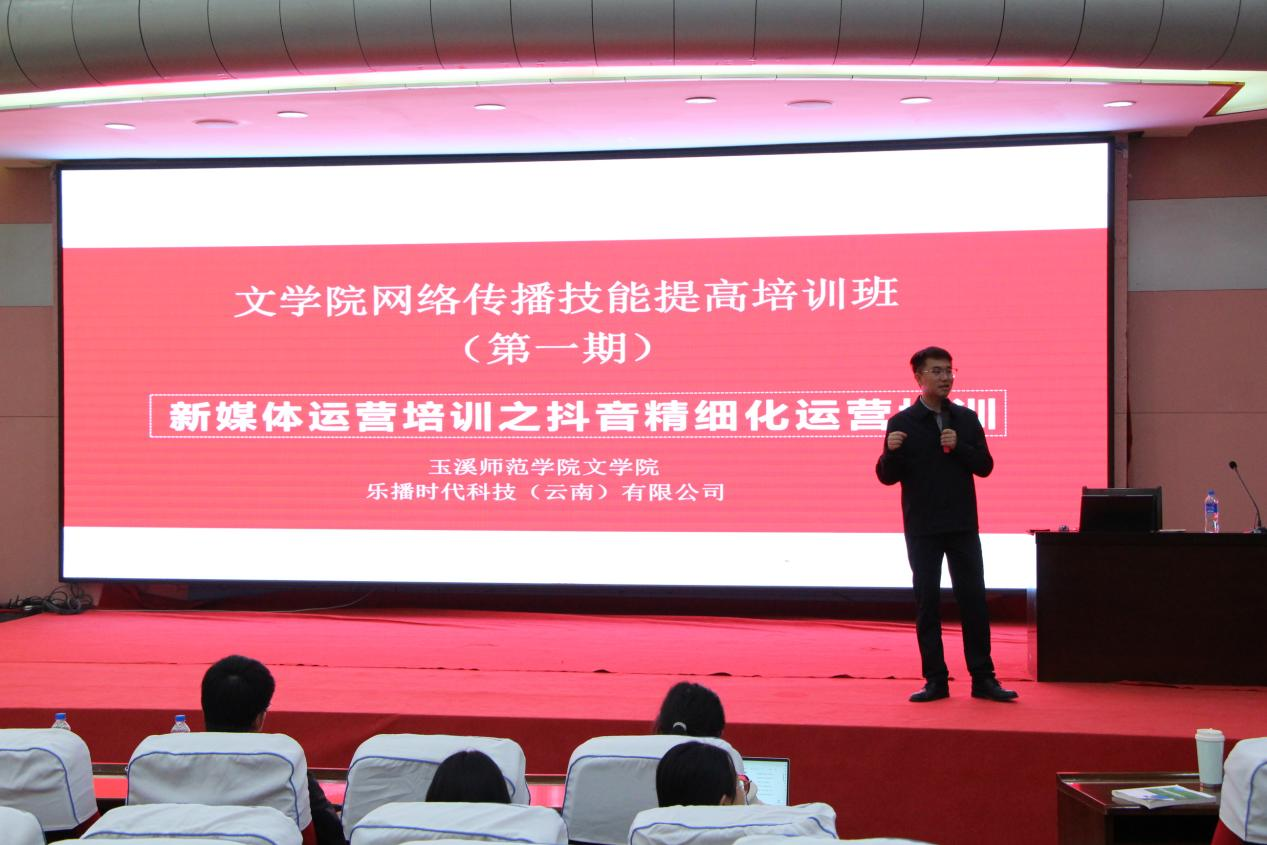 随着互联网的快速发展,短视频平台已成为人们获取信息的重要渠道。为了提高学生网络传播技能,结合新文科发展需要,玉溪师范学院文学院于3月20日下午特邀乐播时代科技(云南)有限公司总经理谢昕在图书馆多元学术报告厅开展了第一期网络传播技能提高培训。此次活动由文学院新闻专业负责人刘娴睿主持,文学院在校师生参与培训。