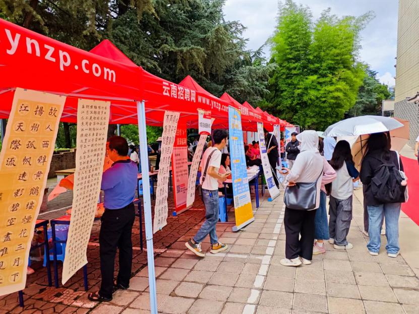 为贯彻执行党中央、国务院关于“稳就业”“保就业”工作重要决策部署,抢抓毕业生求职关键期,玉溪师范学院文学院于2024年6月11日下午在文学院前举办2024届毕业生专场招聘会。