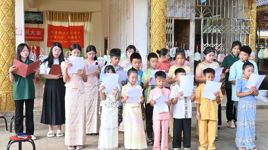 为深入贯彻落实党的二十大关于“加大国家通用语言文字推广力度”的决策部署,积极响应习近平总书记关于教育的重要论述和关于语言文字的重要指示批示精神,玉溪师范学院文学院“语通八方,籽籽同心”推普实践团于2024年7月15-7月22日暑假期间,前往云南省西双版纳傣族自治州勐海县景真村,开展了一场别开生面的“推普助力乡村振兴”社会实践活动。