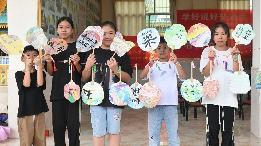 在推普过程中,实践团以“典耀中华”为主题,结合傣族文化中的民歌、壁画、神话传说、大青树等资源,推普团为当地整理了景真八角亭壁画故事的讲解稿。开展了大青树下讲《论语》和《山海经》知识阅读会,讲述红色经典故事,组织红色经典朗诵会—练习朗诵《读中国》,组织教授《国家》手势舞等等。这些活动不仅提升了小朋友们的文化素养,激发了他们对中华优秀传统文化的热爱与传承,还厚植了他们拳拳的爱国之心。