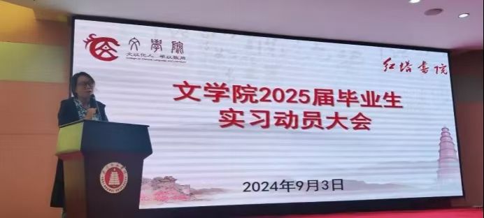 为全面贯彻落实学校高质量“三习”要求,推进学生教育实习工作有序开展,文学院于9月3日下午三点在图书馆多元学术厅召开“2025届毕业生实习动员大会”。