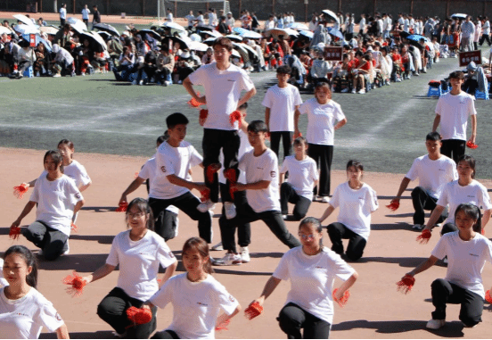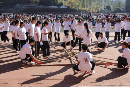 午后时分,健身操比赛接踵而至。14个学院的同学们身着各具特色的服饰,随着欢快的旋律起舞,将传统与现代完美融合。文学院的同学们身着文化衫,手握烟盒,以彝族烟盒舞为灵感,融入现代健身元素,呈现了一场别开生面的表演。他们的动作既有彝族烟盒舞的韵味,又不失现代健身的活力,赢得了评委与观众的一致好评。