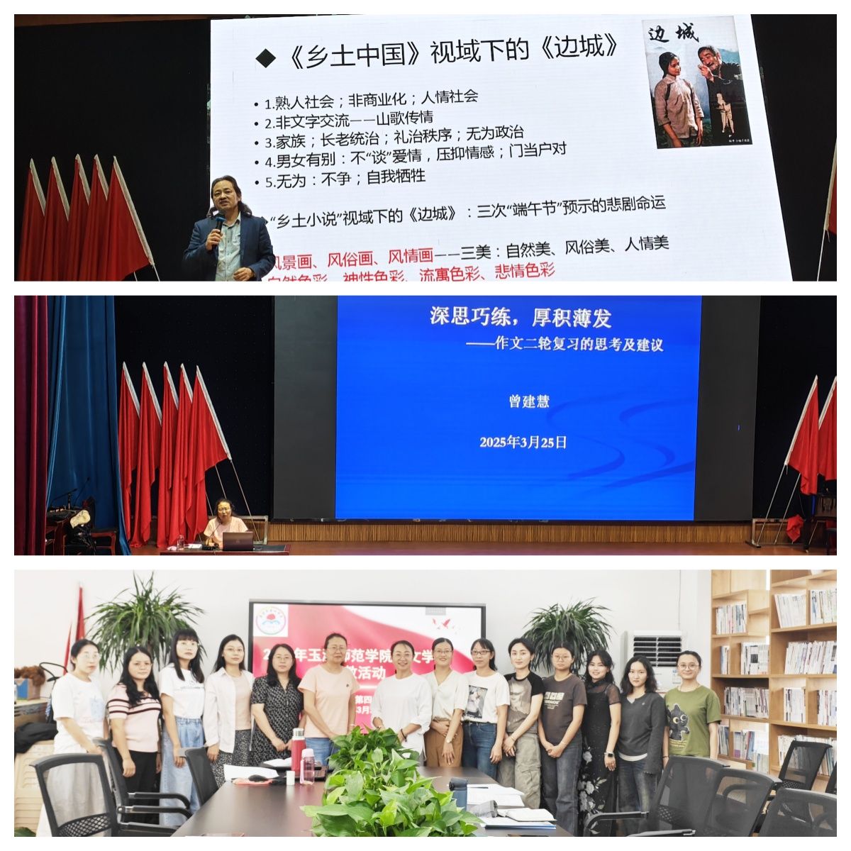 此外,文学院赵江云副教授以 “《乡土中国》与中学课文中的乡土小说”为主题,开展深度教学研讨。他不仅对《乡土中国》的核心内容与学术价值进行了详细解读,还将书中内容与课本中的乡土小说进行对比分析,引导教师如何在教学中培养学生对乡土文化的理解与感悟,有效提升学生的文学鉴赏能力和文化素养。