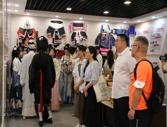 活动首站,文学院师生走进新平县非物质文化遗产展览馆,近距离感受少数民族的历史文化与艺术魅力。在非遗传承人的讲解中,学生们被琳琅满目的民族服饰、手工艺品所吸引,深刻体会到传统技艺的匠心与坚守。随后的“汉服与民族服饰展演”环节,文学院墨韵汉服社成员身着历代传统服饰,与当地少数民族群众、儿童携手登台,以服饰为纽带,展现民族文化的交融共生。