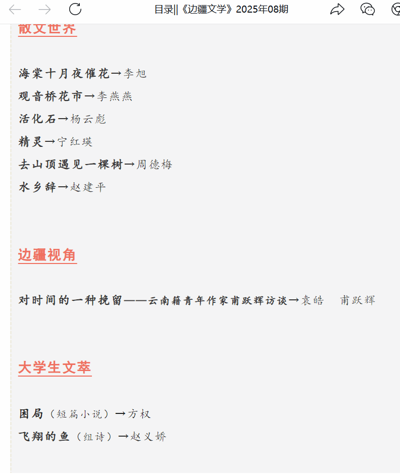文学院中文22-3班赵义娇组诗荣登《边疆文学》