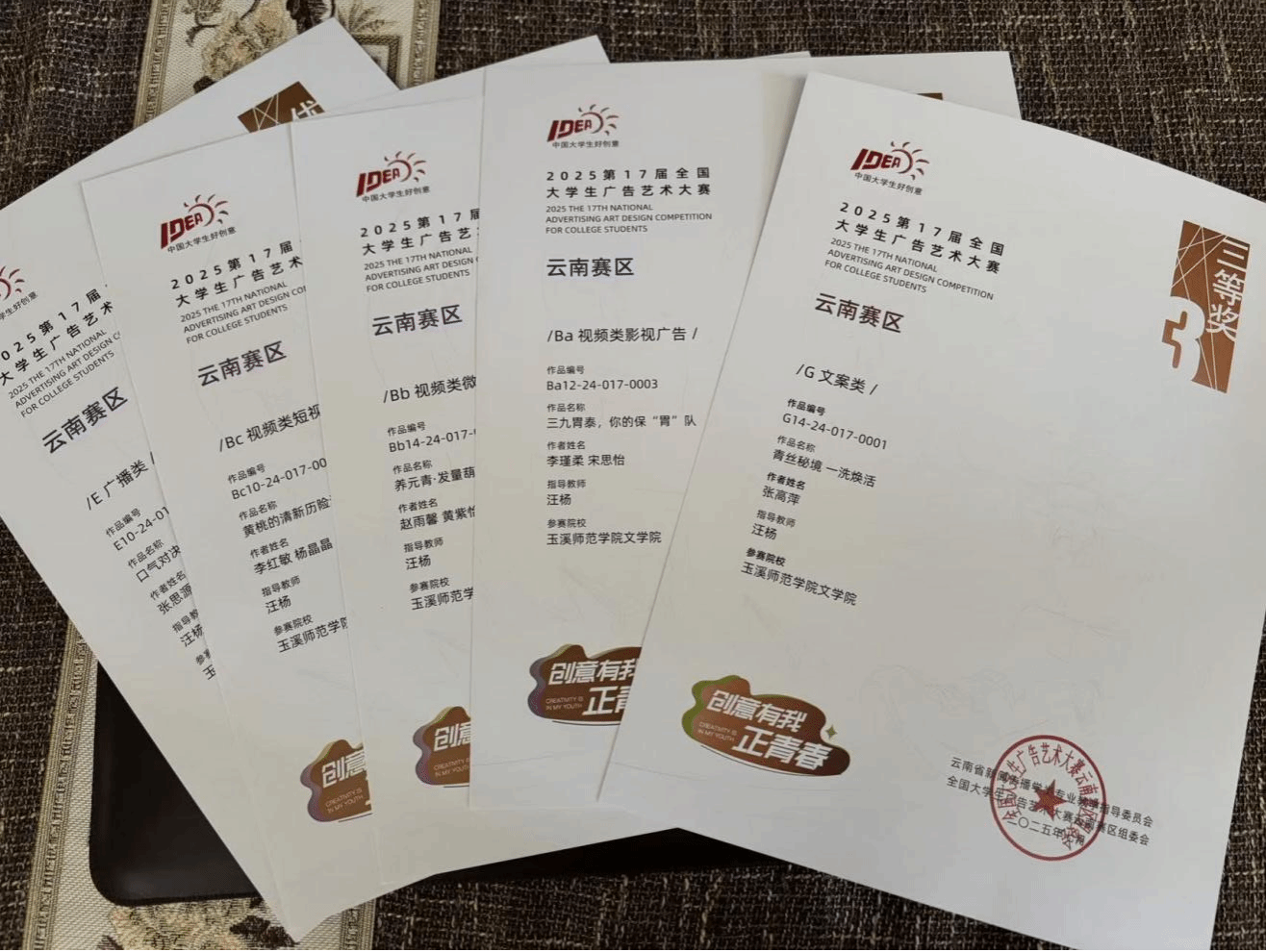 玉溪师范学院文学院学子在第十七届全国大学生广告艺术大赛中荣获国家级奖项