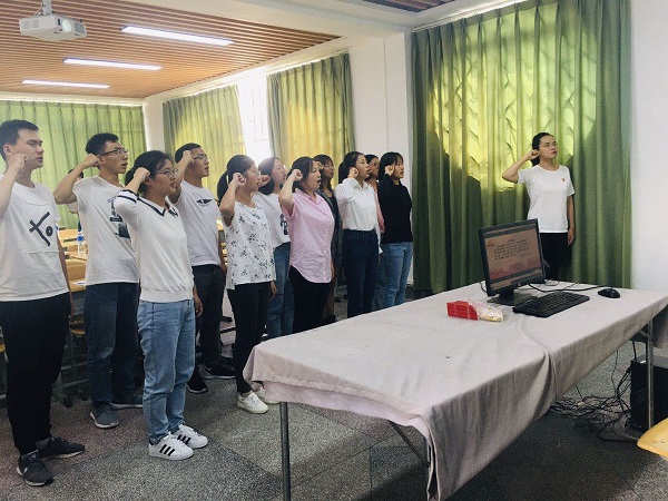 2020年 6月 3 日下午 点 分,文学院学生第一党支部在八教307举行新党员入党宣誓仪式,第一党支部书记带领12名新党员进行了庄严的宣誓,12名新党员面对入党誓词,右手握拳,庄严宣誓,志愿为共产主义奋斗终生。