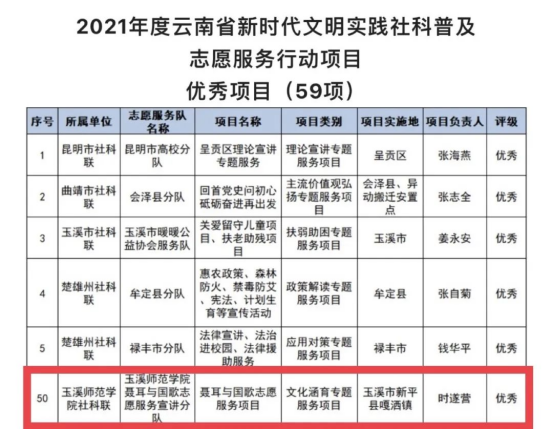 喜讯|红塔书院聂耳与国歌志愿服务项目荣获2021年度云南省新时代文明实践社科普及志愿服务行动项目优秀项目