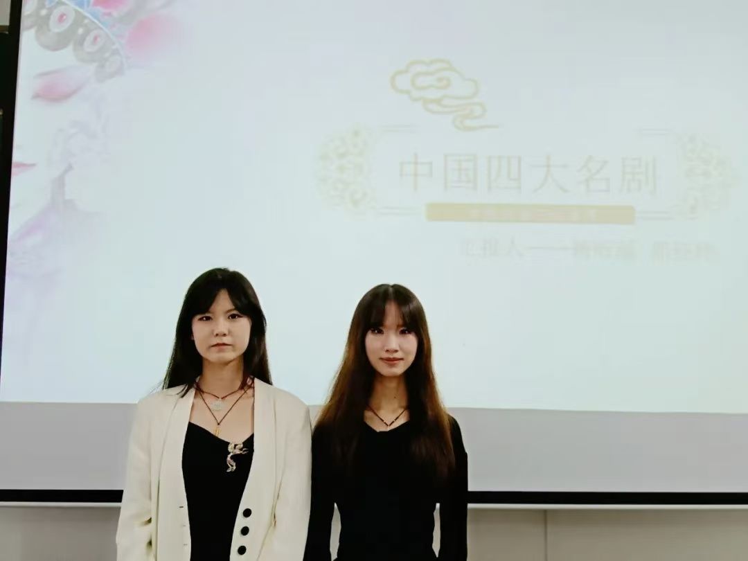 活动由杨娟同学担任主持人,主讲人杨昕瑶和邵钰婷分别以生动的语言和丰富的资料,带领同学们走进了中国古典文学的瑰宝——四大名剧的世界。