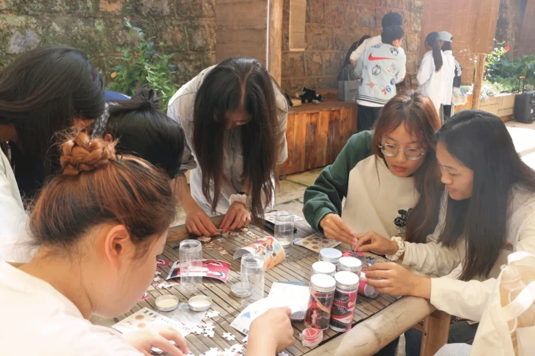 民族语言文化社用拼图展示民族服饰文化,让同学们领略到了多民族文化的绚丽多彩。