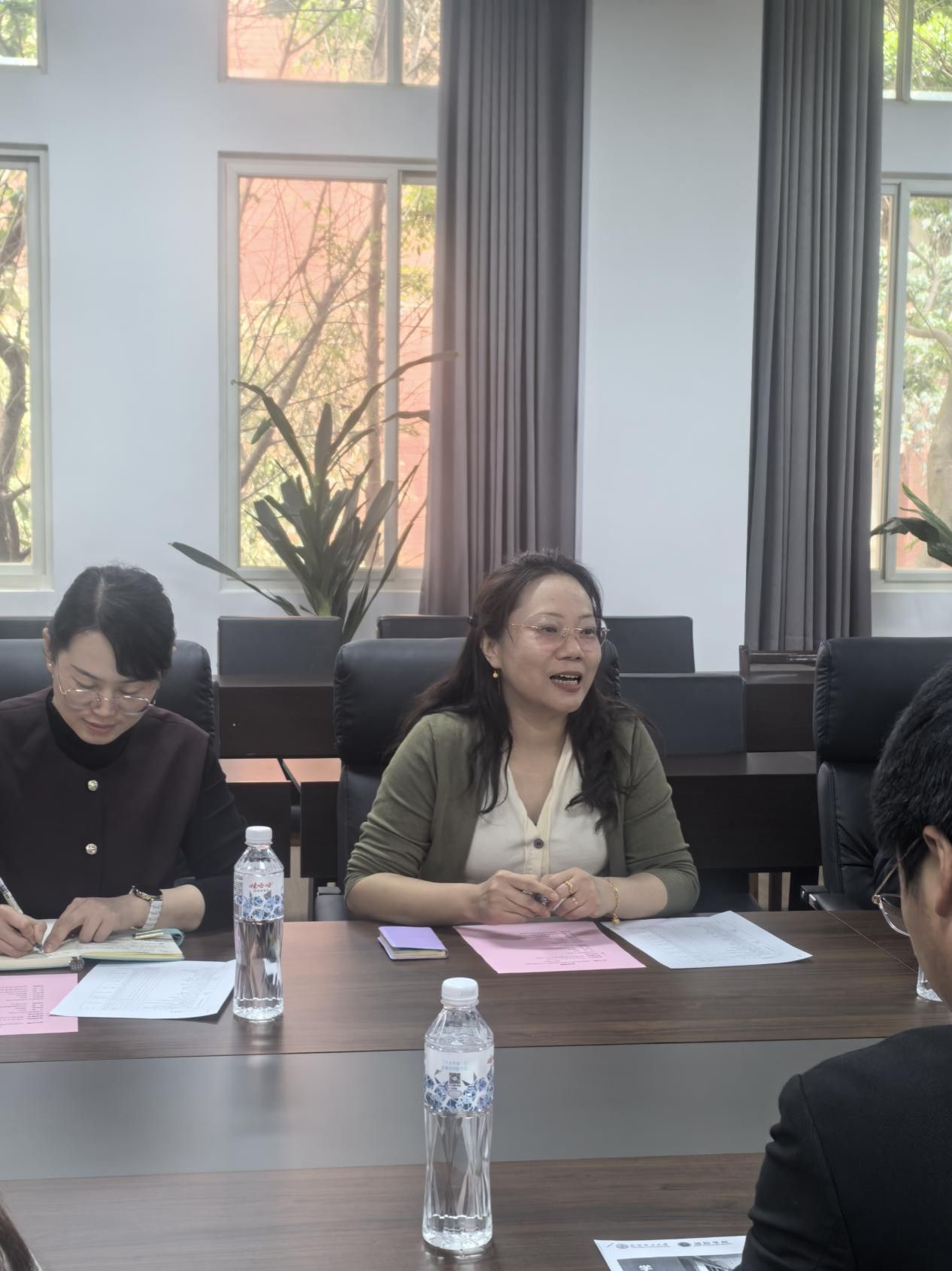 玉溪师范学院文学院院长方波在致辞中,首先对昆明理工大学国际学院的热情接待与经验分享表示感谢。随后,方波院长系统介绍了文学院在硕士点申报、学生境外实习实践、考研升学辅导及实践导师队伍建设等方面的工作进展与发展规划。她表示,此次座谈交流是两院深化合作、互学互鉴的重要契机,文学院始终高度重视学科发展,在申硕攻坚、人才培养等工作中,希望双方能在学科专业建设上加强合作,共同推动两校相关学科高质量发展,同时也希望国际学院在推进申硕工作方面给予指导。文学院赵映蕊副院长详细说明了当前文学院在课程设置、实践教学安排等方面的现状与困惑,希望能借鉴昆明理工大学国际学院“理工+国际化”的课程建设经验,尤其是在数智化课堂打造、实践教学创新等方面获取宝贵建议,助力文学院优化专业培养方案,提升学生综合竞争力。